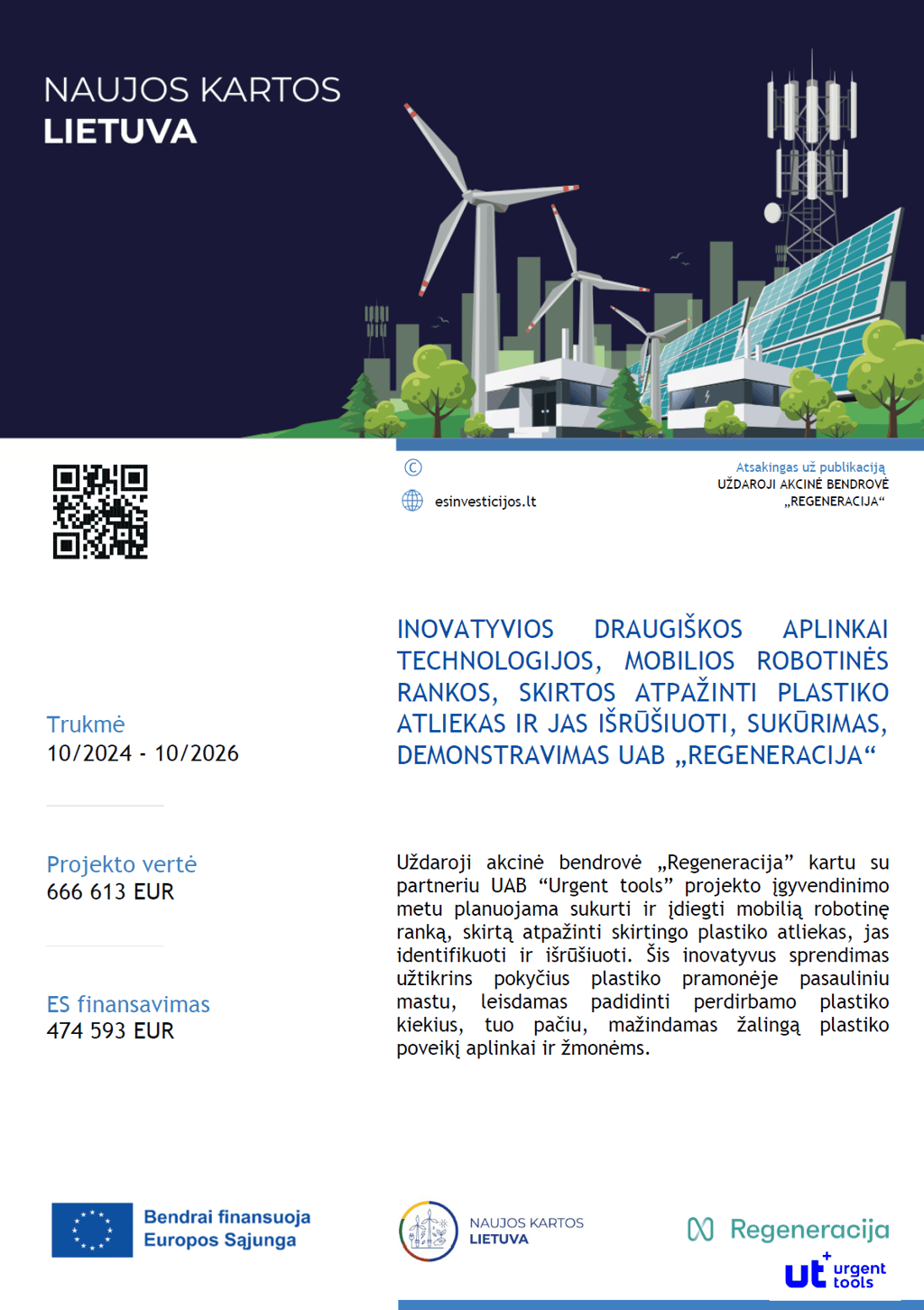Šiuo metu kartu su UAB "Regeneracija" kuriame mobilę robotizuotą platformą, skirtą plastiko atliekoms atpažinti bei rūšiuoti.